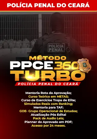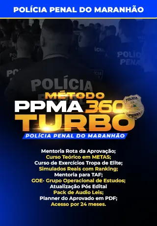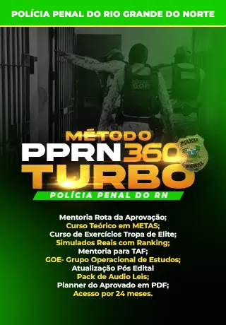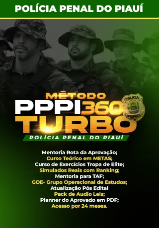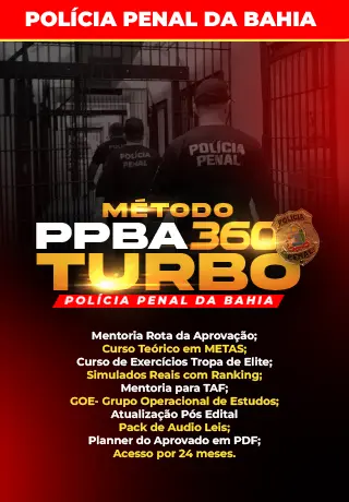 A assinatura Polícia Penal TOTAL TURBO garante o seu acesso aos cursos: POLÍCIA PENAL DO CEARÁ 360 TURBO, POLÍCIA PENAL DO PIAUÍ 360 TURBO, POLÍCIA PENAL DA BAHIA 360 TURBO, POLÍCIA PENAL DO RIO GRANDE DO NORTE 360 TURBO E POLÍCIA PENAL DO MARANHÃO 360 TURBO.